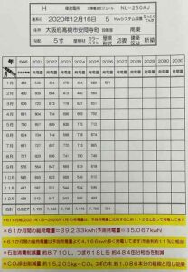 シャープ太陽光発電5.0kwシステムのお客様の発電量を確認しました。61ヵ月間の総発電量=39,233kwhです。結果、ご提案時の予測発電量よりも約4,166kwh多く発電しました。予測発電量と比較すると約1.12倍上回って発電しています。仮に年金利に置き換えると約11%に相当します。とてもうれしい誤算です。何もしていないのに、まさに太陽の恩恵、屋根裏貯金です。これを火力発電の石油消費削減量に換算すると約8,710Lつまり18L缶約484缶分相当を削減。CO₂排出削減量に換算すると約15,203kg-CO₂,スギの木約1,086本の植樹と同じ効果になります。このような太陽光発電システムのご提案を望まれる方は、お気軽に是非ご連絡ください。
